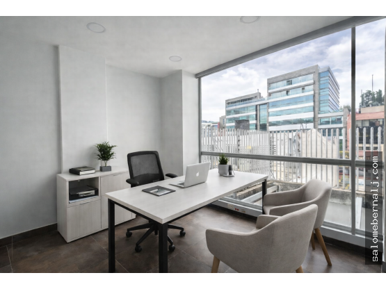 Dos oficinas cerradas, área amplia libre, un baño, cocina y cuarto de cómputo o redes.